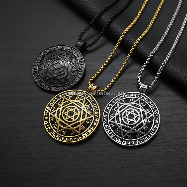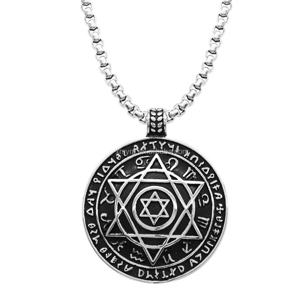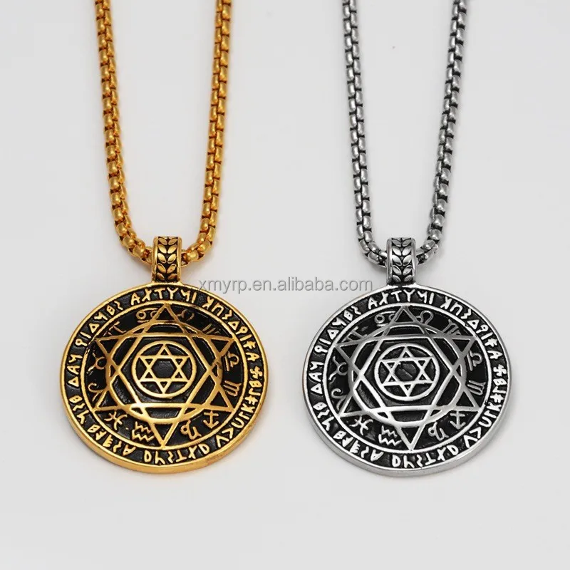 以色列犹太教护身符珠宝符封印所罗门犹太大卫之星12生肖标志吊坠不锈钢项链
