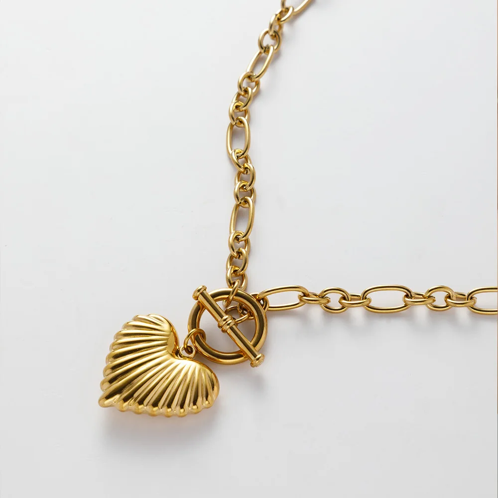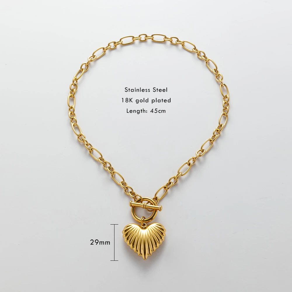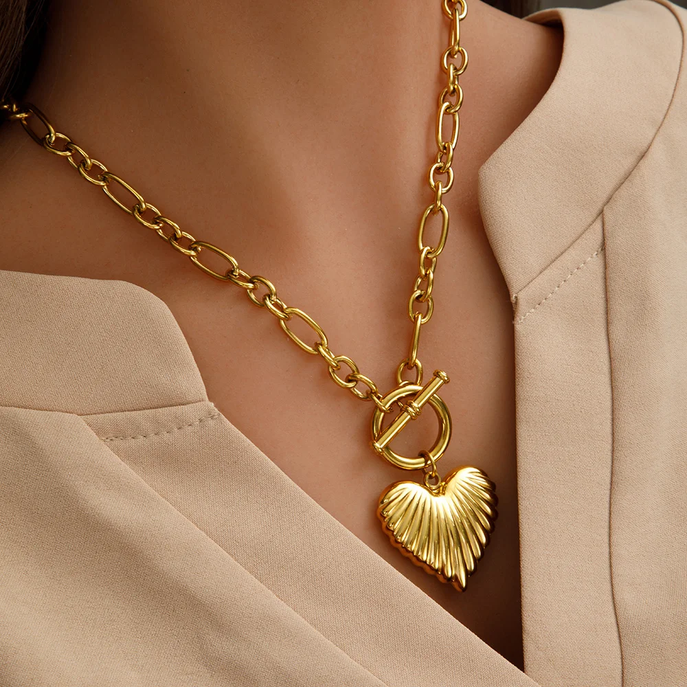 夏季不锈钢饰品18k镀金时尚防水爱心OT扣女吊坠项链YF5141