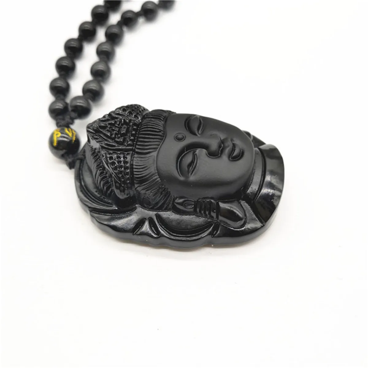 天然黑色黑曜石雕刻玉观音佛头像福字符符项链吊坠礼品