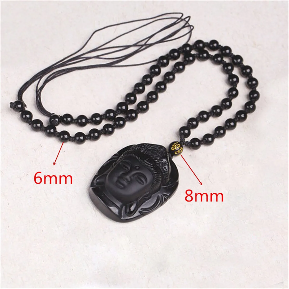 Specifications: 100% Brand new and high quality Material: Obsidian Color: Black Gender: Unisex Pendant Size: 48mm*36mm*19mm Chian Size: 42mm-46mm (adjustable), Beads Diameter: 6mm Conversion: 1mm=0.039inch, 1inch=25.4mm