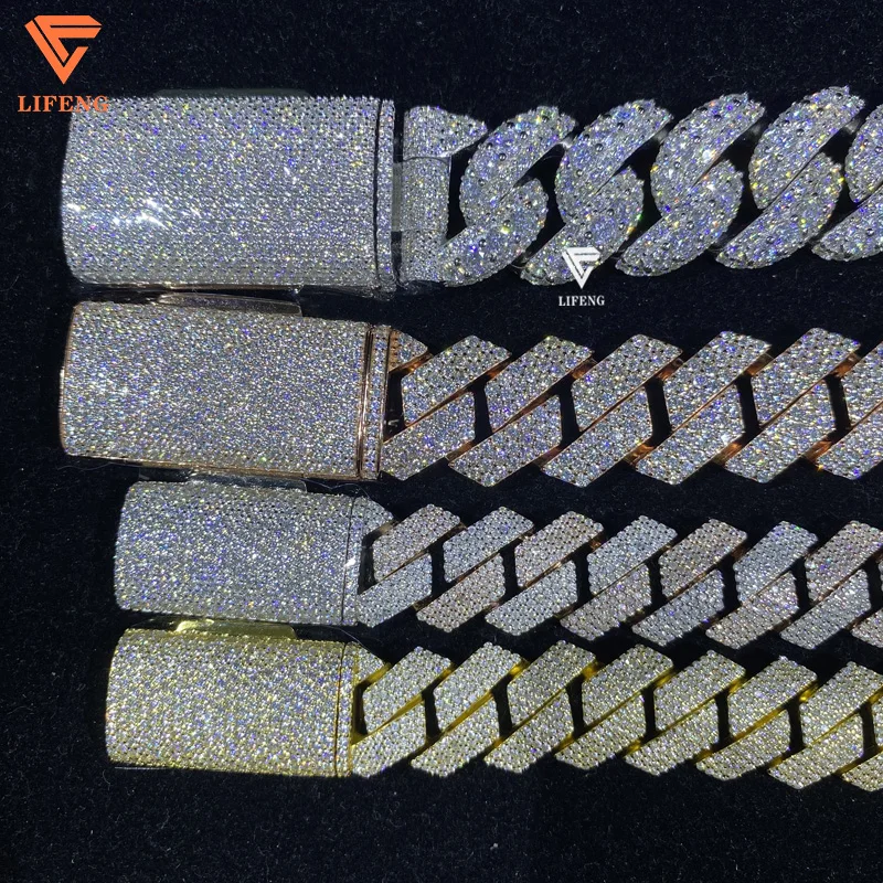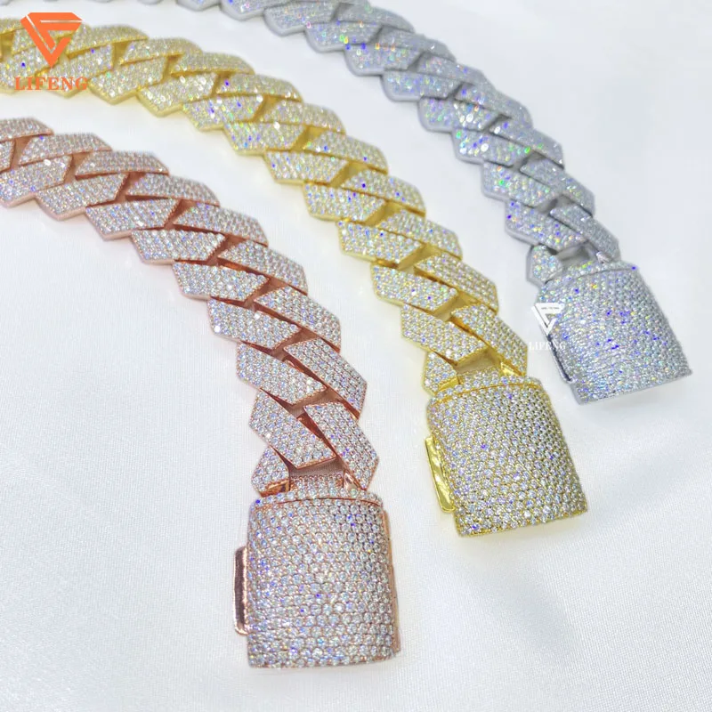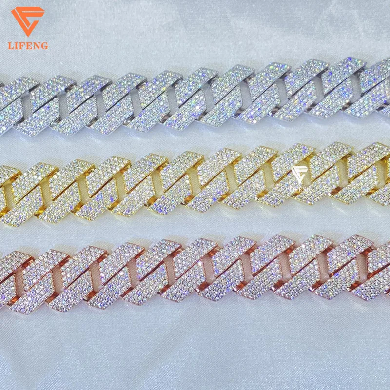 定制20毫米S925纯银VVS硅石珠宝冰钻石项链手链套装古巴链镀金