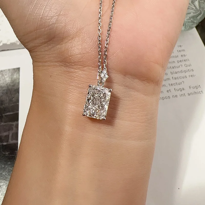 实验室种植的钻石吊坠项链女性辐射切割矩形合成钻石铂金产品钻石项链