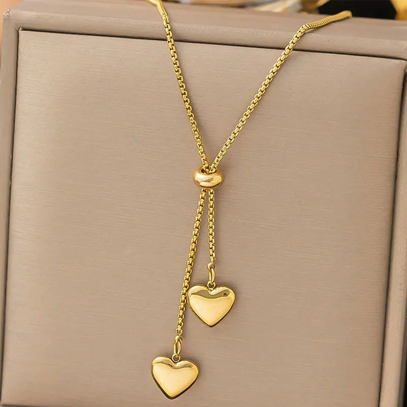 批发定制Y形爱心吊坠项链18k镀金无光泽不锈钢男女礼品