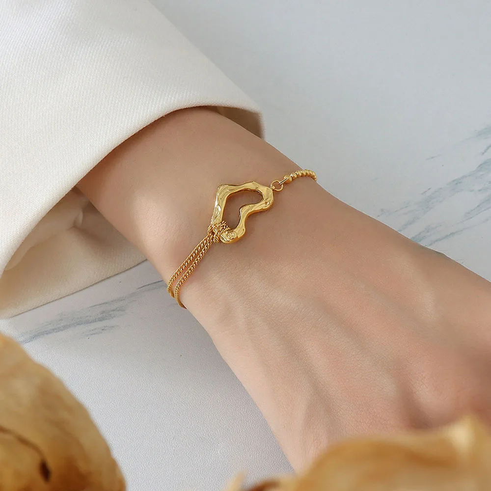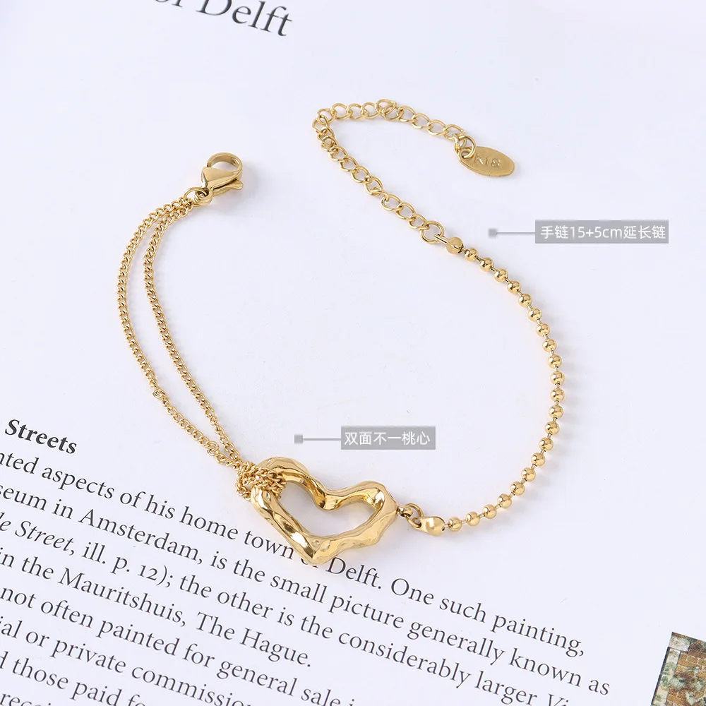 新款上市钛钢手链18k镀金镀银爱心心形可调手镯手链女