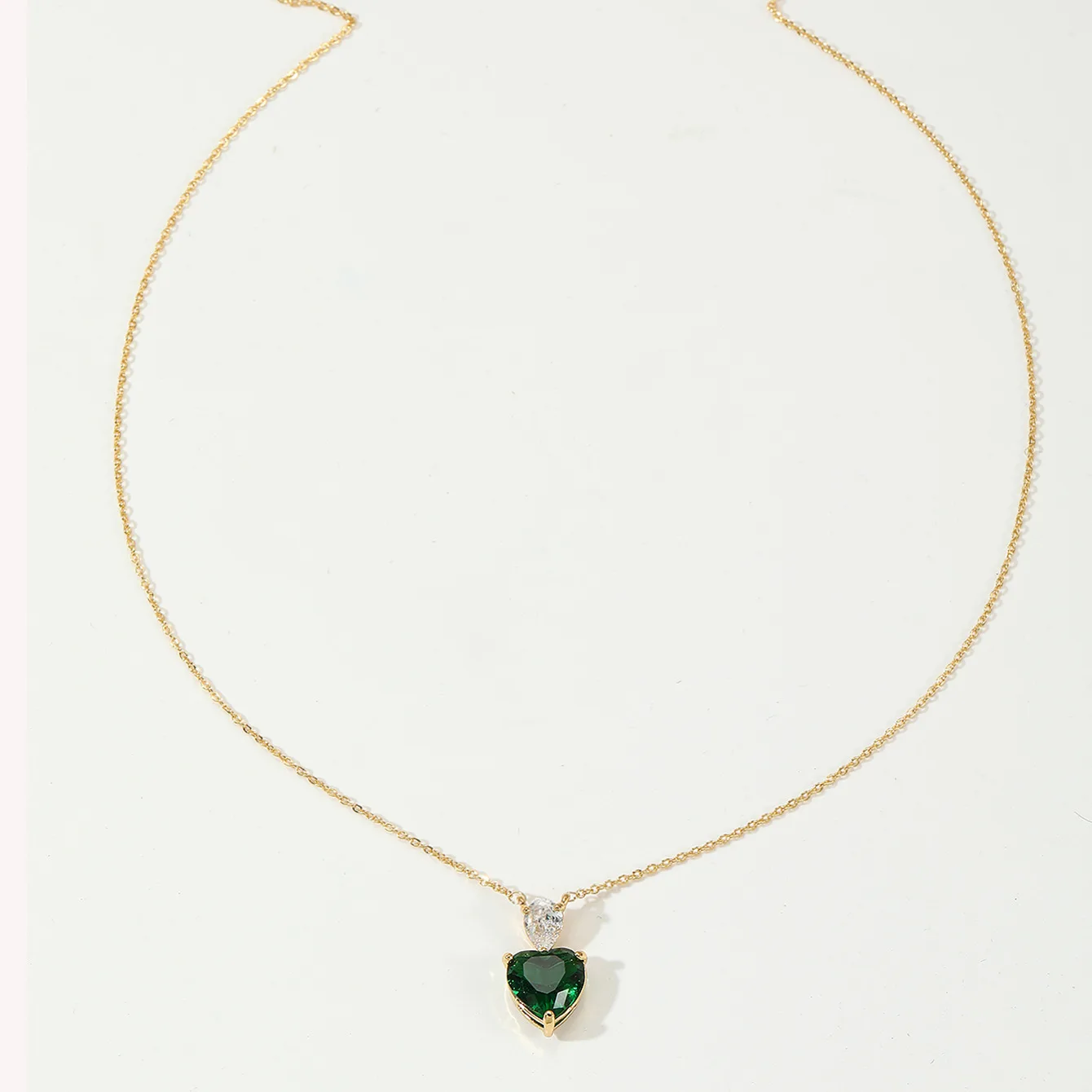 时尚吊坠项链可爱粉色白色和绿色锆石情人节礼物女朋友浪漫爱情心形魅力饰品