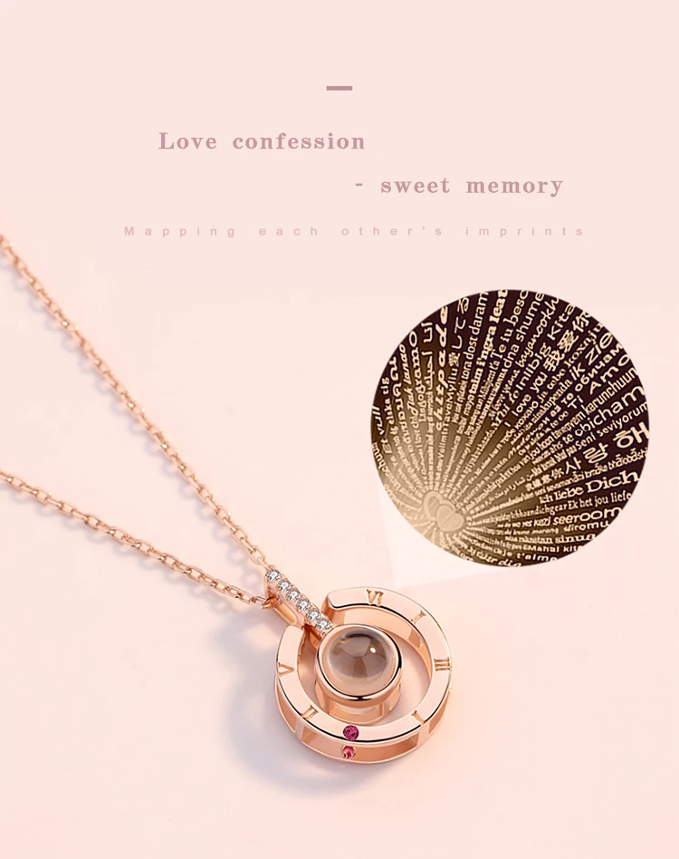 最佳爱情礼物玫瑰金银100语言我爱你声明项链爱情记忆吊坠珠宝时尚项链