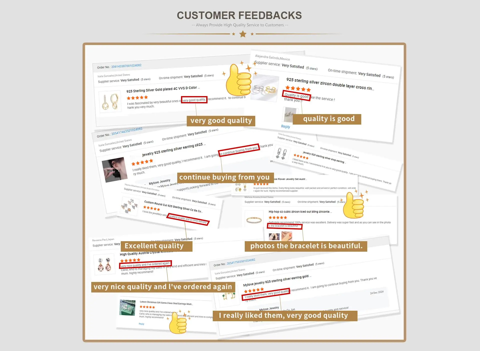 We have received many 5 stars reviews from our customers,which are a testament to our service.We will continue to provide excellent service to each customers as always.
