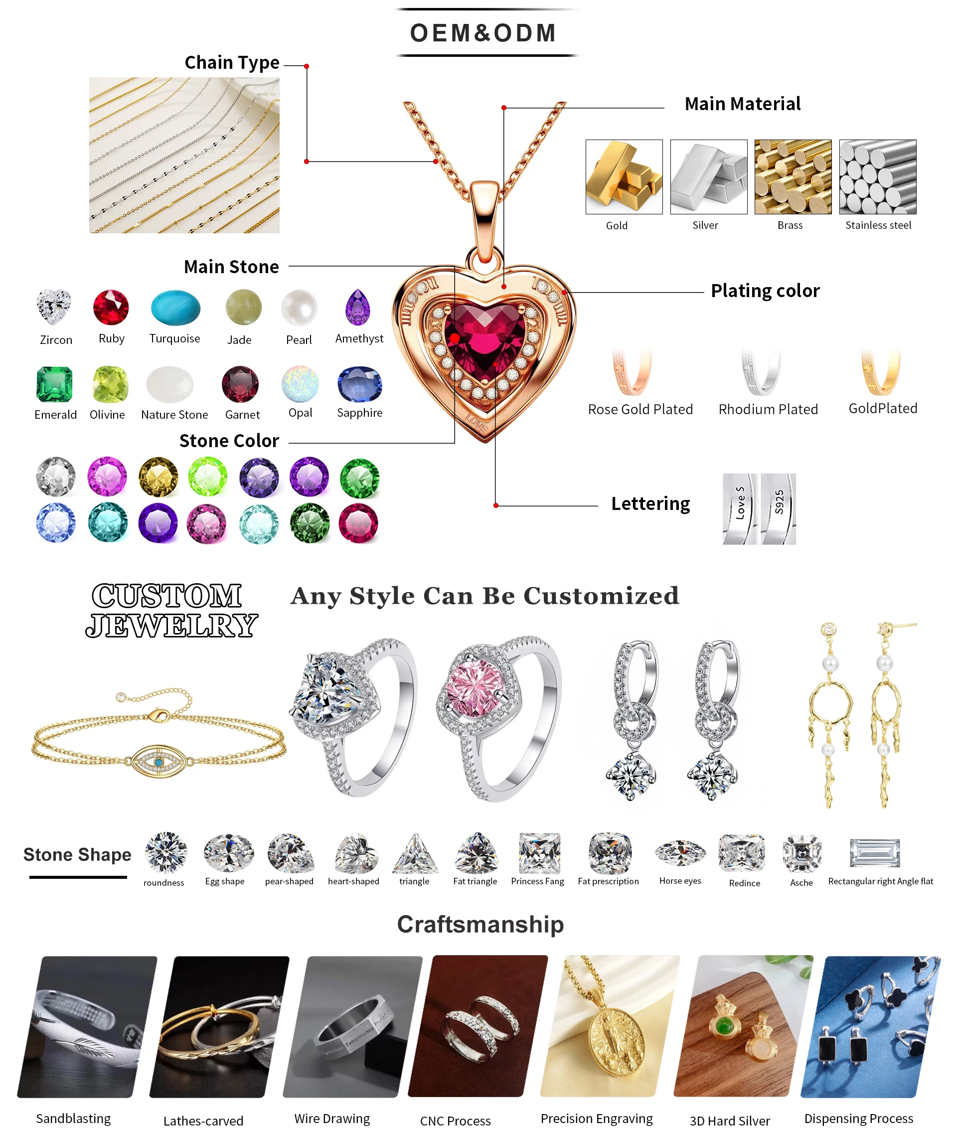 Customized Materials | 925 Silver, Stainless Steel, Brass, Platinum Plating, Gold Plating, Natural Stone, Diamond… | ||||||
