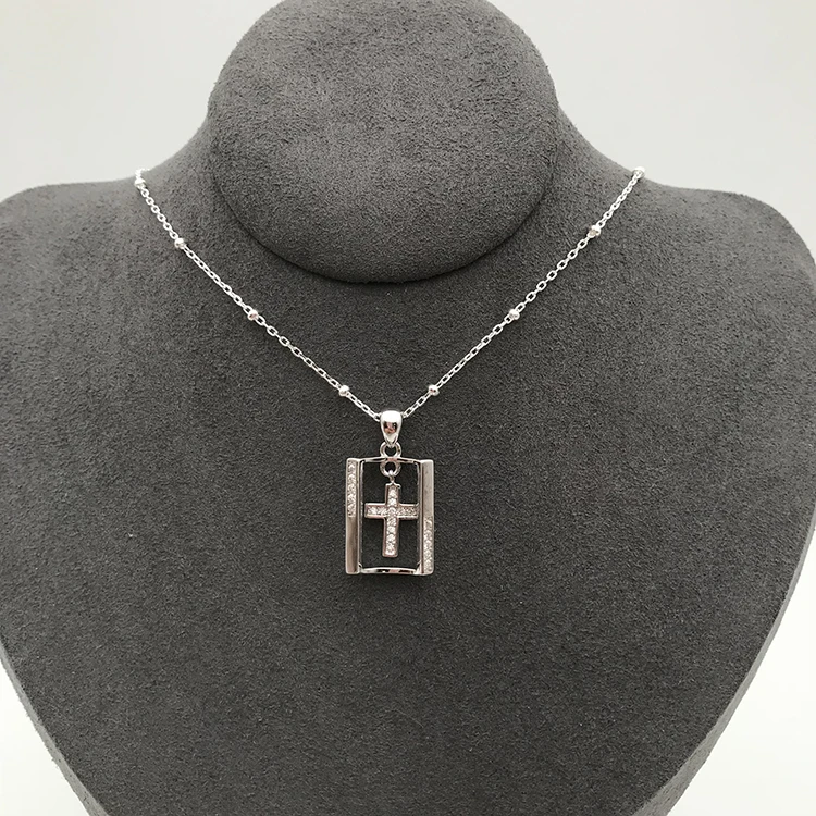 白金镀金水晶十字架吊坠,宗教十字架首饰,纯银钻石十字架吊坠项链女装