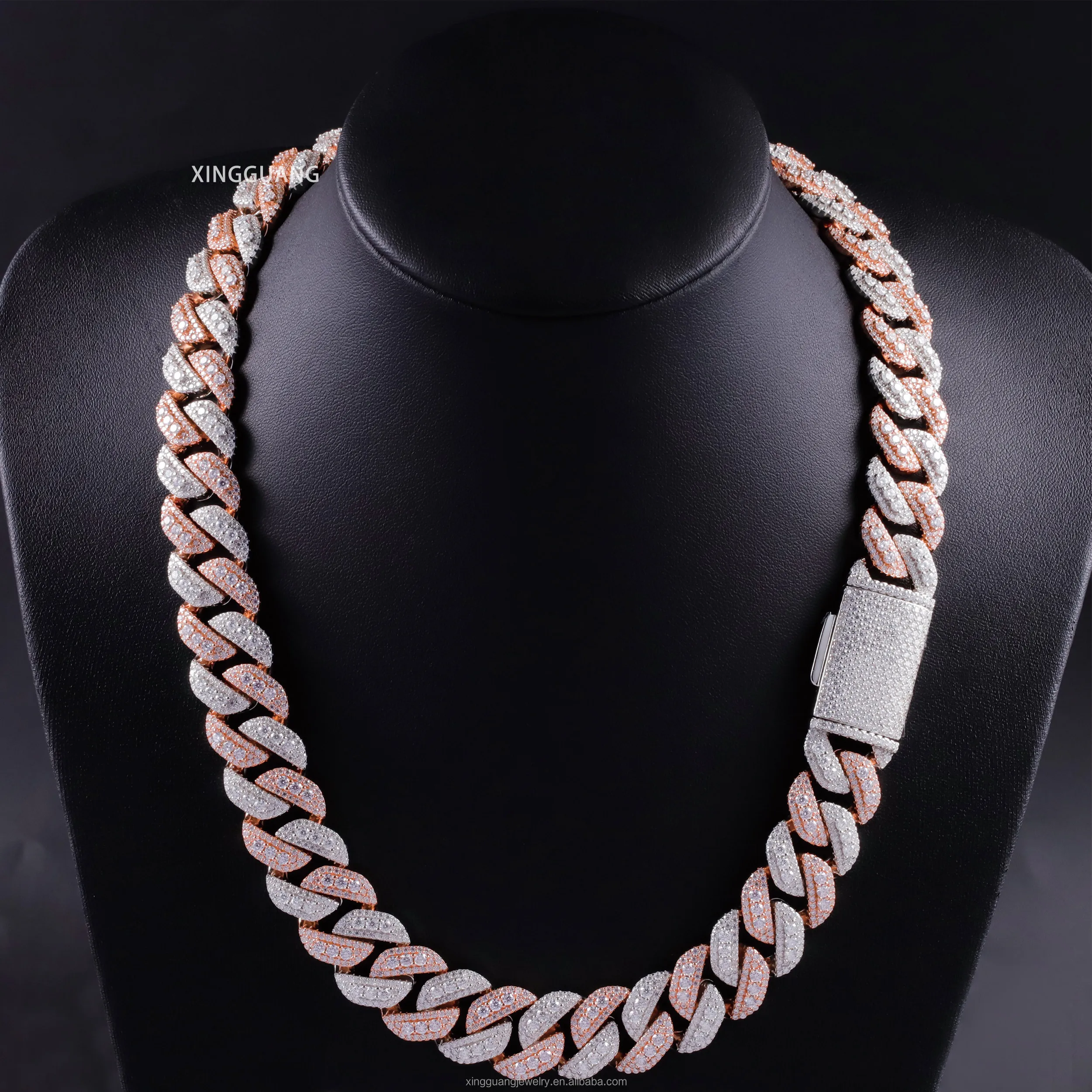 15-20毫米宽VVS硅石钻石项链手链925纯银金硅石古巴链,带GRA证书
