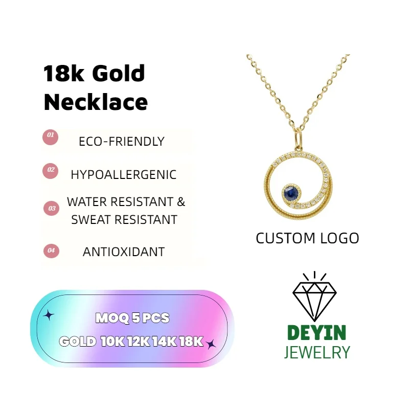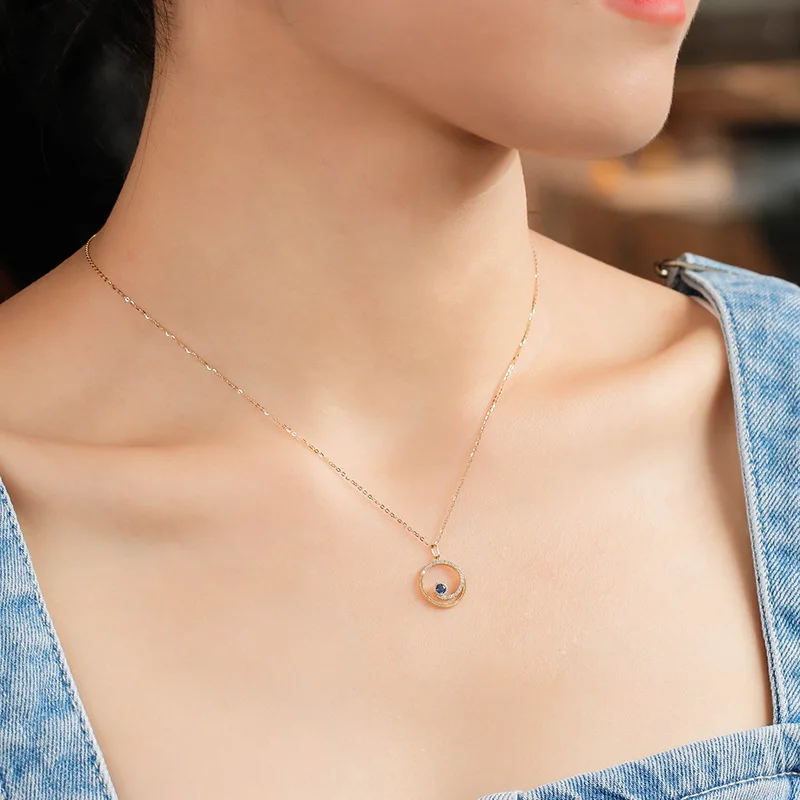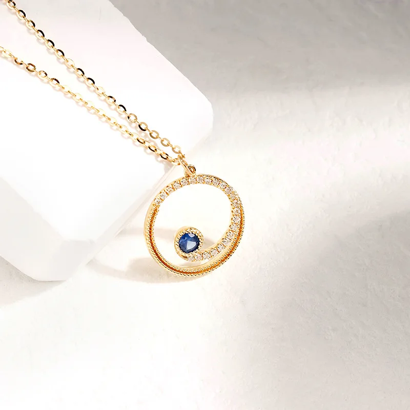 DEYIN新款简约优雅钻石饰品18k纯金蓝宝石钻石吊坠女孩项链链