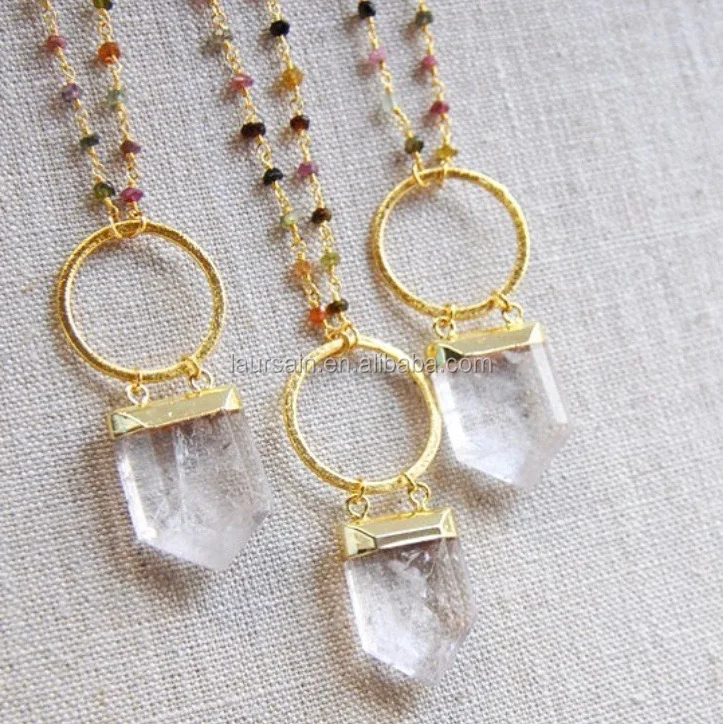 LS-A128时尚水晶石英吊坠项链念珠项链与大金圈时尚设计批发