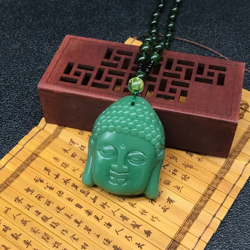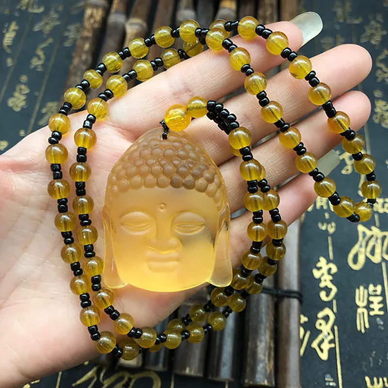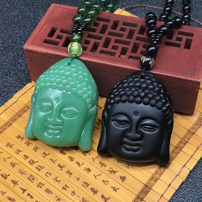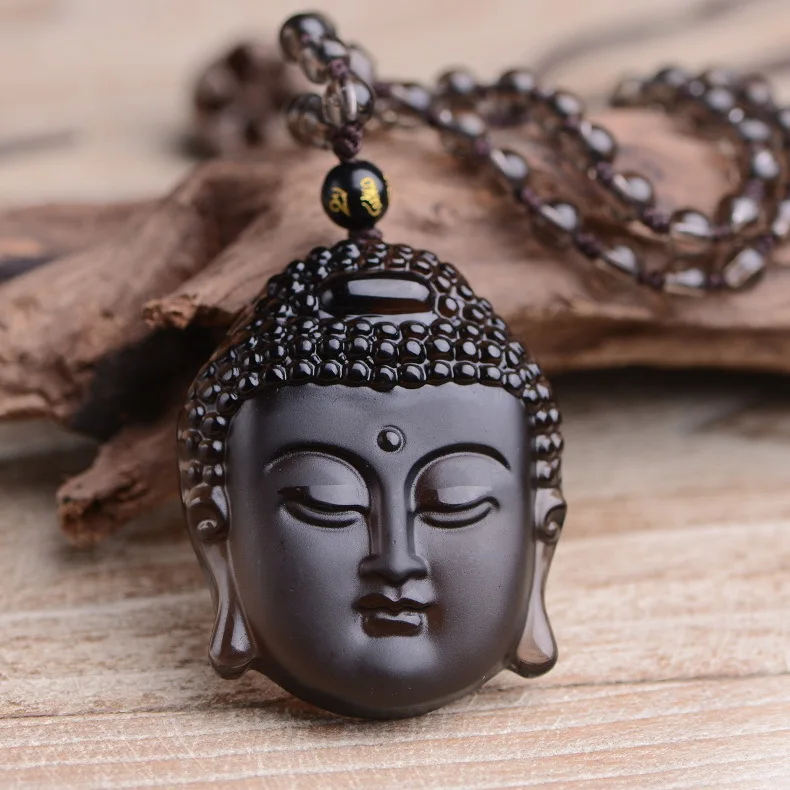 R、宝石。批发释迦牟尼佛教黑曜石雕刻幸运护身符珠链玻璃吊坠佛项链